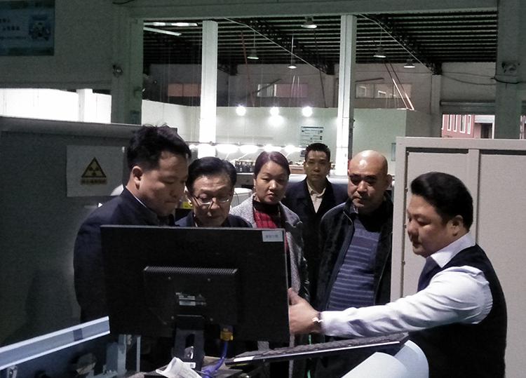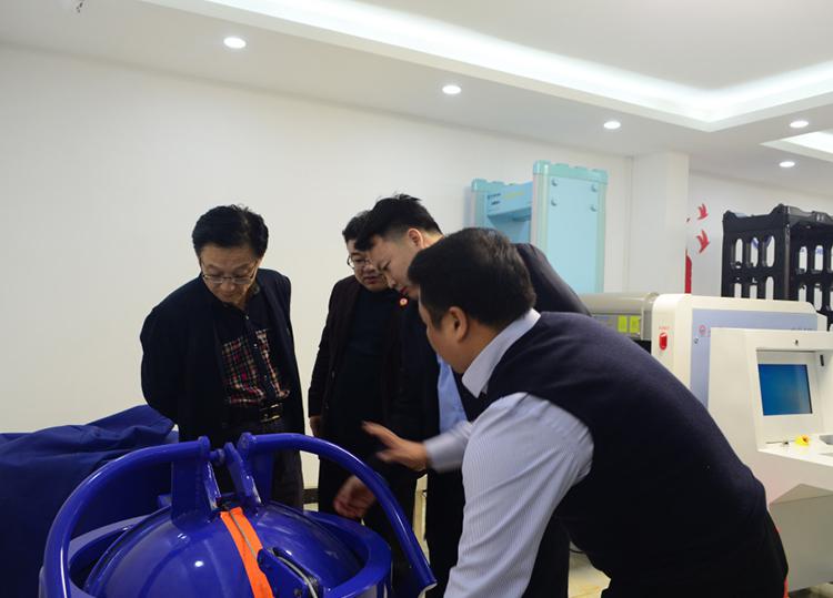 任興磊書記一行先后對集團安檢產品車間、警用產品生產車間、產品測試廳、研發大樓等各辦公區進行了參觀,對各類安檢、警用系列產品及安防系統集成類產品進行了詳細的了解。